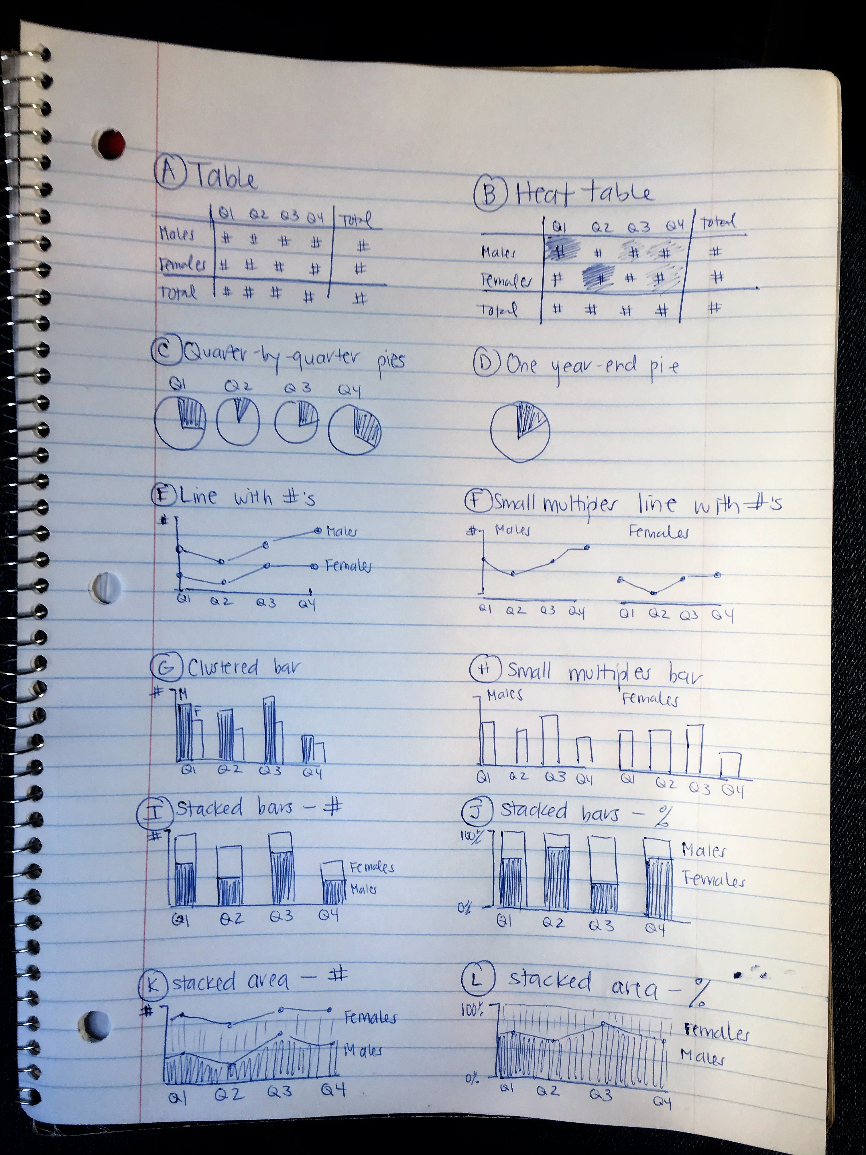 Explore potential patterns in your dataset and figure out which chart might work best.