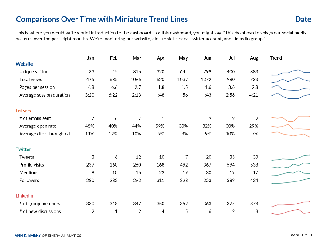 - get ideas for more formal charts that could be shared with my colleagues or clients in a report or presentation.