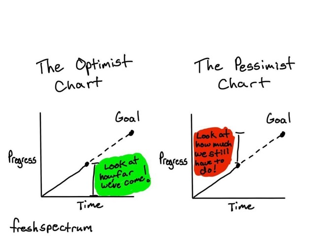 Years ago, my friend Chris Lysy made this cartoon about optimist and pessimist charts: